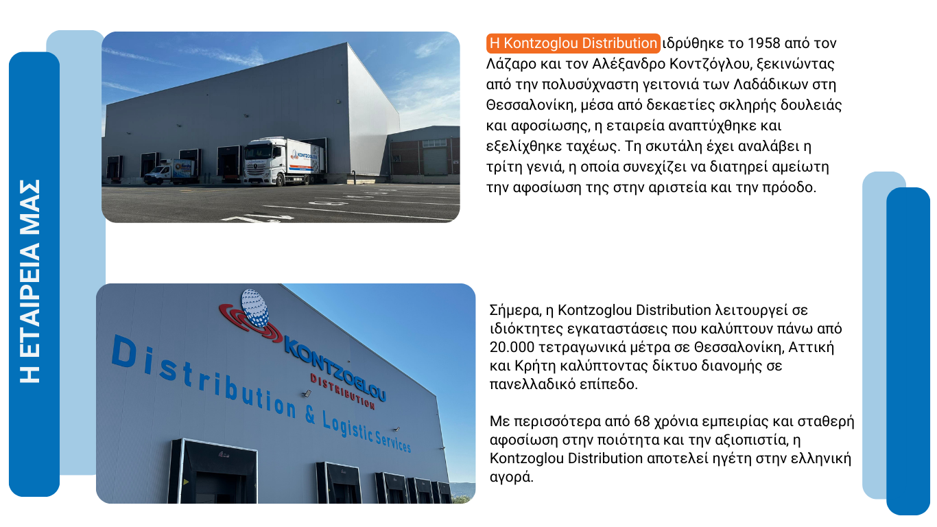 "Η Αφοί Κοντζόγλου προσφέρει εξαιρετικές υπηρεσίες διανομής. Οι διαδικασίες τους είναι καλά οργανωμένες και οι παραδόσεις γίνονται πάντα με ακρίβεια. Η συνεργασία μαζί τους είναι πάντα ευχάριστη."